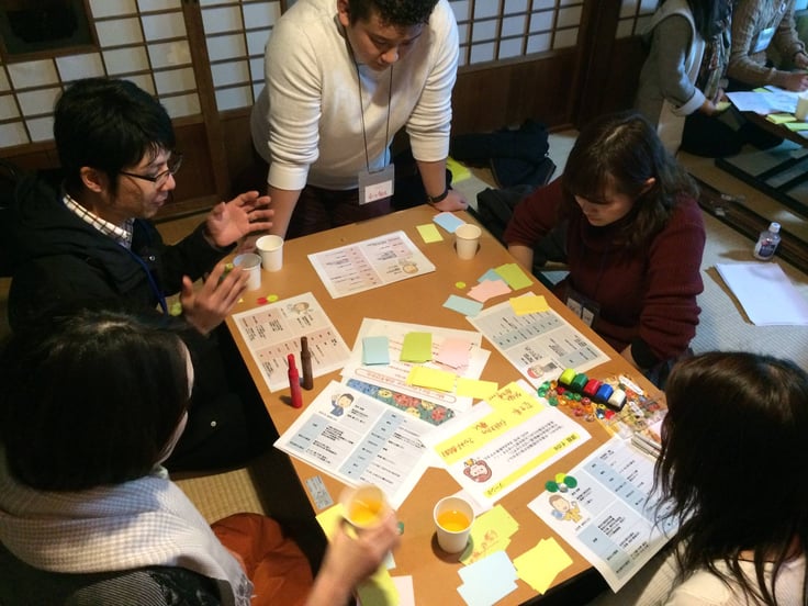 このボードゲームは、親が読み上げるとちぎや地方に山積する様々な「課題」に対して、どのような解決策があるかを考えるというもの。