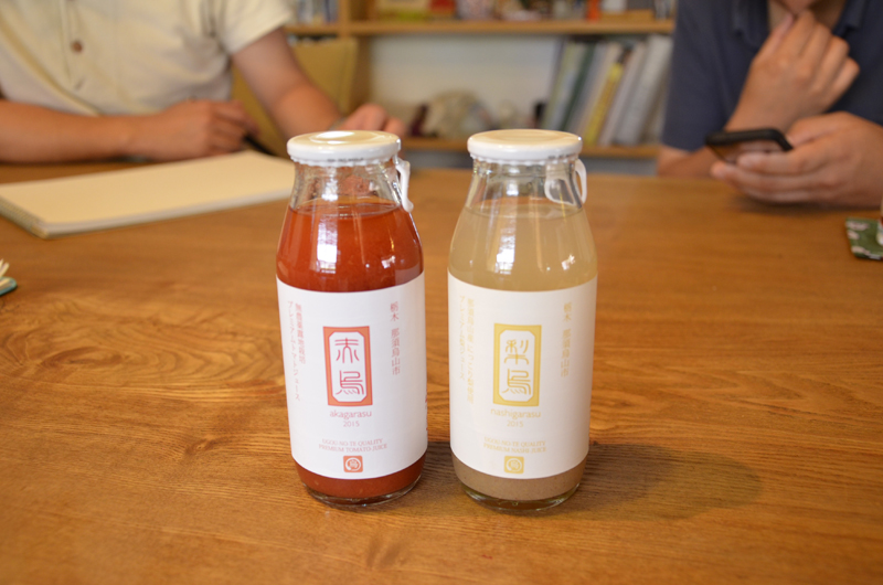 地元烏山を愛する高校の同級生が集まりはじまった「烏合の手」。外の人たちに烏山を知ってもらうため、本業の仕事と両立しながら、地元の野菜や果実を利用したジュースなどの商品づくりに取り組んでいる。
