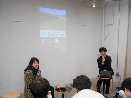 最初に、ツアーで制作したローカルラジオ用のCMを披露。CMで紹介されていたイベントの企画運営に関わっている中村さんから、イベントや那須町の印象についてお話頂きました。